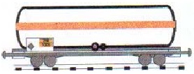 Железнодорожные цистерны, в которых транспортируются сжиженные газы класса 2, коэффициент от 3 до 6, дополнительно маркируются оранжевой полосой шириной 30 см. |