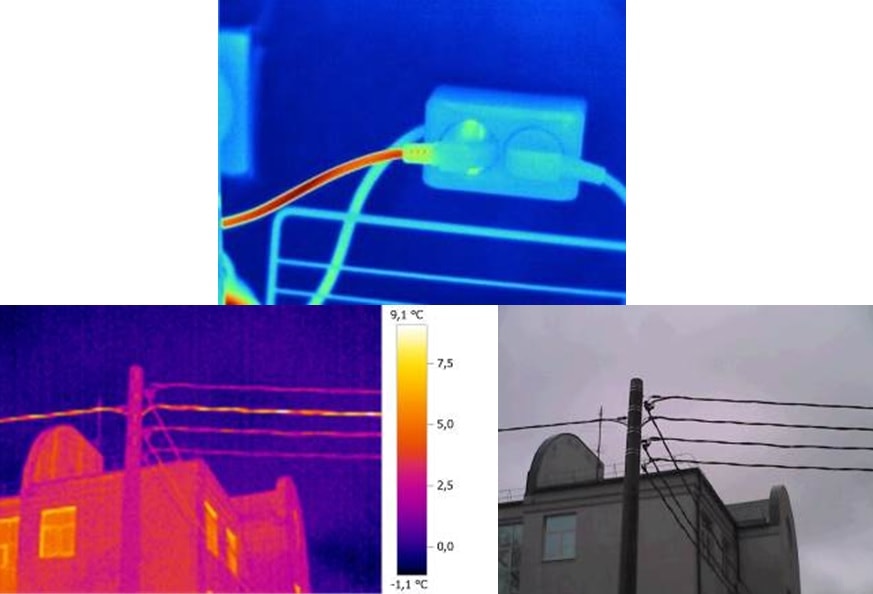 Тепловизор способен видеть скрытую электропроводку под напряжением и различать неравномерность распределения температуры в электропроводах