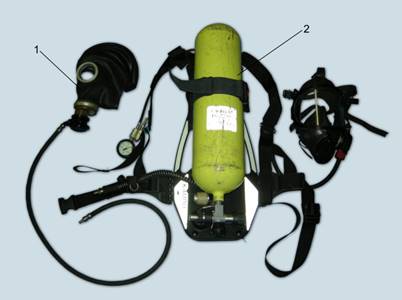 Рисунок 2 Спасательное устройство (1) и дыхательный аппарат АП-98 (2)