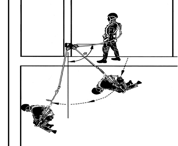 Выбор анкерной точки относительно расположения работника в составе страховочной системы должно исключать при падении маятниковое движение работника, а также перемещение стропа по кромке из-за возможности его обрыва в результате трения.