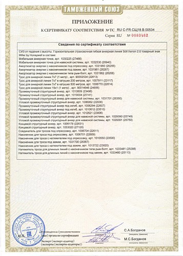 в) соединительно-амортизирующей подсистемы (стропы, канаты, карабины, амортизаторы, средство защиты втягивающегося типа, средство защиты от падения ползункового типа на гибкой или на жесткой анкерной линии). Тип и место анкерного устройства систем обеспечения безопасности работ на высоте указываются в ППР на высоте или в наряде-допуске.