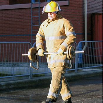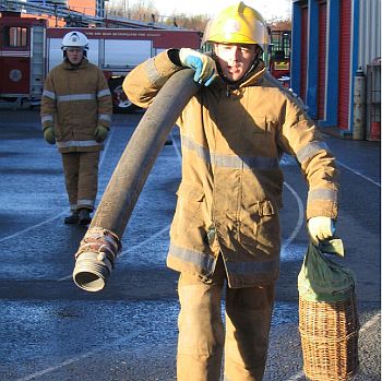 - Поднять и перенести два рукава 70 мм (каждый весом около 15 кг) вперед на 100 м.